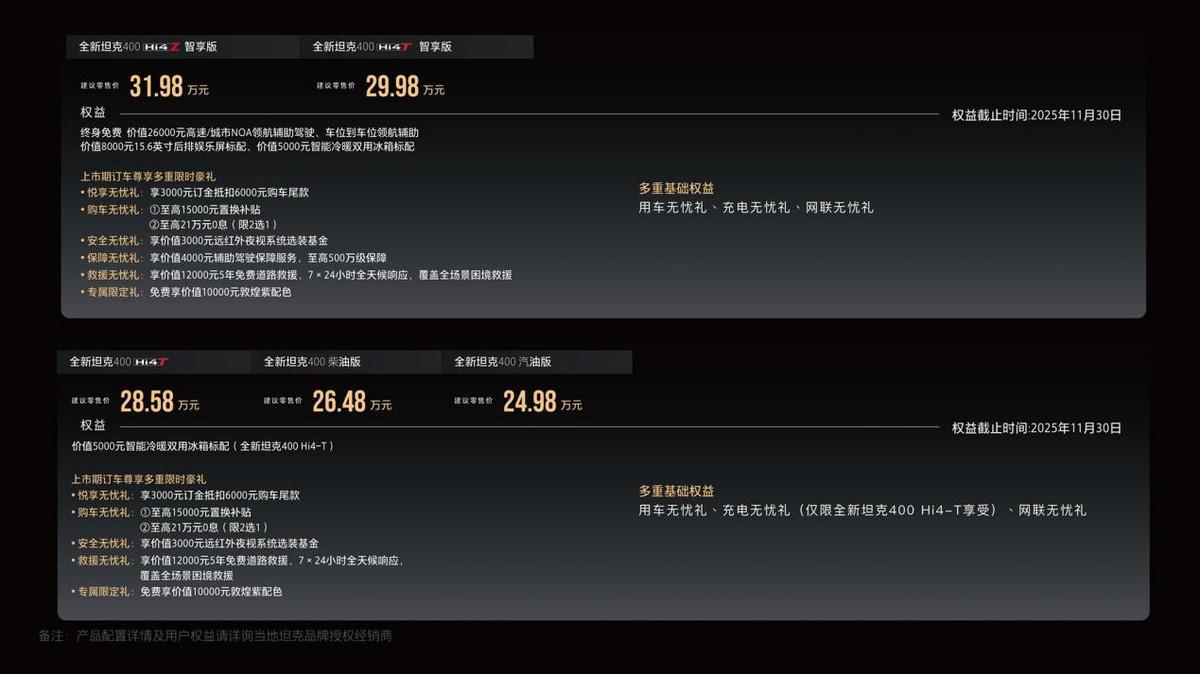 全新坦克400 Hi4-T智享版,售价29.98万元;