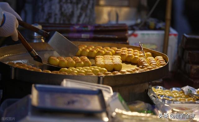 不远处的油炸糕摊位前,队伍已经排了 10 多米长。摊主尹大姐双手不停,把裹着豆沙馅的面团放进热油锅里,面团在油里翻滚几下,就膨胀成金黄的圆球,外皮炸得酥脆,咬一口还会爆浆。“我们家的油炸糕用的是东北的黄米面,豆沙是自己熬的,不加糖精,吃着放心。” 尹大姐一边翻着油炸糕,一边和游客聊天,“你看这队伍里,有从广东来的,还有从新疆来的,都是刷到视频特意来的。”