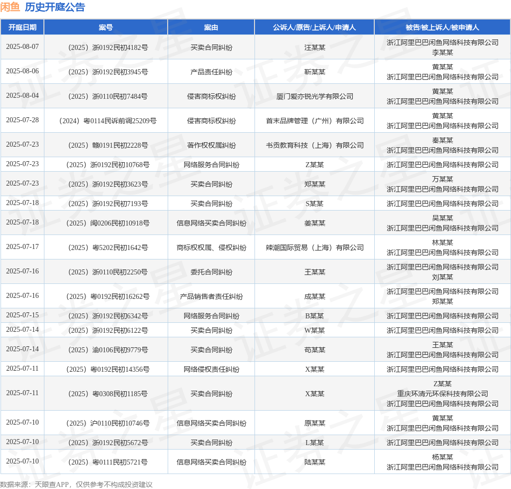 本站消息金八号配资,根据天眼查APP显示,近日公布了一则浙江阿里巴巴闲鱼网络科技有限公司作为被告/被上诉人的开庭公告,详细内容如下: